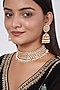 Featuring a 22Kt gold plated necklace studded with kundan polki, set in mixed metal. It is paired with a matching pair of earrings. Perfect wear for festive occasions or wedding ceremonies.