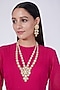 Featuring a 22Kt gold plated necklace studded with kundan polki and diamonds, set in mixed metal. It is paired with a matching pair of earrings. Perfect wear for festive occasions or wedding ceremonies.