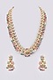 Featuring a 22kt gold plated long necklace studded with kundan polki, jadau stones and multi-colored pearls, set in mixed metal. It is paired with a matching pair of earrings. Perfect wear for festive occasions or wedding ceremonies.