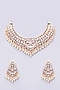 Featuring a 22 Kt gold plated necklace studded with kundan polki and pearl drops, set in mixed metal. It is paired with a matching pair of earrings. Perfect wear for festive occasions or wedding ceremonies.
