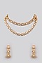 Featuring a 22kt gold plated layered necklace studded with moissanite polki, set in mixed metal. It is paired with a matching pair of earrings. Perfect choice for weddings, parties, and for other Indian festivities.