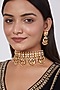 Featuring a 22Kt gold plated necklace studded with kundan polki, set in mixed metal. It is paired with a matching pair of earrings. Perfect wear for festive occasions or wedding ceremonies.