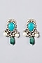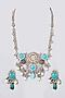 Metal Oxidised Turquoise Natural Stone Long Necklace Set