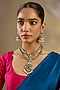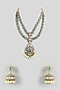 Featuring a two tone finish long layered necklace studded with kundan polki, green stone and pearls, set in mixed metal. It is paired with a matching pair of earrings. Perfect for wedding celebrations, festive soirees or cultural gatherings adding a regal charm to every look.