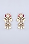 Featuring a two-tone finish necklace studded with uncut kundan polki and pink stones, set in mixed metal. It is paired with a matching pair of earrings. Perfect for weddings or festive celebrations.