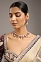 Featuring a two-tone finish necklace studded with kundan polki and pink stones, set in mixed metal. It is paired with matching earrings. Perfect wear for a wedding or festive occasion.