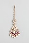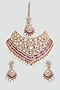 Featuring a two-tone finish layered necklace studded with kundan polki and red stones, set in brass. It is paired with a matching pair of earrings and a maangtikka. Perfect for wedding celebrations, festive soirees or cultural gatherings adding a regal charm to every look.