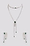 White Finish Diamond & Emerald Green Stone Necklace Set