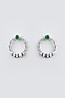 White Finish Diamond & Emerald Stone Hoop Earrings