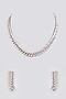Featuring a white finish necklace studded with diamonds, set in mixed metal. It is paired with a matching pair of earrings. Ideal for weddings, festive celebrations or formal evening occasions.