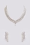 Featuring a white finish necklace studded with diamonds, set in mixed metal. It is paired with a matching pair of earrings. Ideal for weddings, festive celebrations or formal evening occasions.