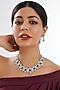 White Finish Faux Diamond & Green Stone Necklace Set