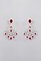 White Finish Faux Diamond & Pink Stone Dangler Earrings
