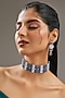 Featuring a white finish choker necklace studded with faux diamonds and sapphire, set in mixed metal. It is paired with a matching pair of earrings. Perfect choice for weddings, parties, and for other Indian festivities.