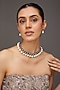Featuring a white finish necklace studded with zircons, amethyst stone and pearl drops, set in mixed metal. It is paired with a matching pair of earrings. Perfect wear for festive occasions or wedding ceremonies.