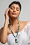 Featuring a gold finish long necklace studded with american diamonds and green stones, set in mixed metal. It is paired with a matching pair of earrings. Perfect choice for festive celebrations or other Indian festivities.