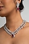 Featuring a gold finish necklace studded with american diamonds and red stones, set in mixed metal. It is paired with a matching pair of earrings. Perfect choice for festive celebrations or other Indian festivities.