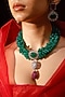 Featuring a gold finish necklace studded with kundan polki and green stones, set in mixed metal. It is paired with a matching pair of earrings. Perfect wear for festive occasions or wedding ceremonies.
