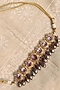 Featuring a 18kt gold plated choker necklace studded with jadau kundan polki, set in brass alloy. It is paired with a matching pair of earrings. Perfect wear for festive occasions or wedding ceremony.