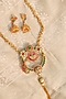 Featuring a 18kt gold plated long necklace studded with jadau kundan polki, set in brass alloy. It is paired with a matching pair of earrings. Perfect wear for festive occasions or wedding ceremony.