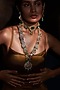Featuring a 18kt gold plated necklace studded with jadau kundan polki, set in brass alloy. It is paired with a matching pair of earrings. Perfect wear for festive occasions or wedding ceremony.