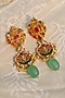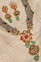 Featuring a 18kt gold plated necklace studded with multi-colored jadau kundan polki, set in brass. It is paired with a matching pair of earrings. Perfect wear for festive occasions or wedding ceremonies.