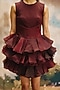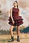 Featuring a deep burgundy mini tiered ruffled dress in organza base. Accentuate it with a clutch, statement earrings and high-boots for cocktail parties or evening soirees.