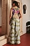 Featuring a light blue peplum top in linen base with print and lace detail. It is paired with wide-leg pants. Style it with hoop earrings and block heels for brunches, casual outings or sundowner.