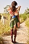 Multi-Colored Cotton Linen Pleated Mini Dress