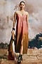 Featuring a multi-colored tiered midi dress in georgette base with a v-neckline, puff sleeves and ruffled cuffs. It is paired with a shirt. Accentuate it with minimal jewellery, mules and a sling bag for brunches, beach dates or vacation outings.