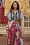 Featuring a multi-colored shirt in linen base with puff sleeves, front button placket and a collar, adorned with floral print. It is paired with a flared skirt. Accentuate it with statement earrings and co-ordinated mules or flats for a relaxed effortless look, perfect for vacations, brunches or sunlit daytime outings.
