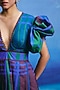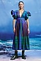 Featuring a multi-colored midi dress in linen base with a plunging V-neckline and puff sleeves. Accentuate it with statement earrings and heels for cocktail parties or evening soirees.