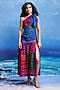 Multi-Colored Linen One-Shoulder Midi Dress