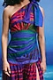 Featuring a multi-colored one-shoulder midi dress in linen base with thigh-high slit and drape knot detail. Accentuate it with statement earrings and heels for cocktail parties or evening soirees.