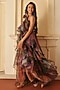 Featuring a multi-colored maxi dress in organza base with floral print and ruffles neckline. Style it with hoop earrings and flats for brunches, beach dates or evening outings.