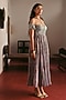 Featuring a pink maxi dress in linen base with thin shoulder straps, gathered details and vertical strip text print. Accentuate it with statement earrings and co-ordinated mules or flats for a relaxed effortless look, perfect for vacations, brunches or sunlit daytime outings.
