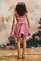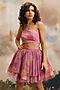 Featuring a pink strapless crop top in georgette and soft net base. It is paired with a pleated skirt. Accentuate it with statement earrings and heels for cocktail parties or evening soirees.