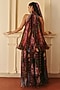 Featuring a wine top in organza base with print. It is paired with a pleated skirt having gathered waistband. Style it with dangler earrings and block heels for festive soirees or pooja ceremony.