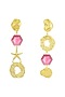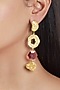 Featuring a pair of gold finish handcrafted dangler earrings studded with red synthetic stones, set in brass.