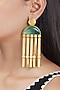 Featuring a pair of gold finish handcrafted dangler earrings studded with green synthetic stones, set in brass.