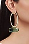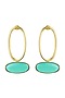 Featuring a pair of gold finish handcrafted hoop earrings studded with green oblong synthetic stones, set in brass.