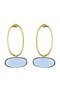 Featuring a pair of gold finish handcrafted hoop earrings studded with aqua oblong synthetic stones, set in brass.
