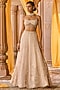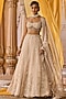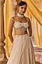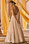 Featuring an ash colored lehenga in pure silk organza base with hand embroidery. It is paired with a net hand embroidered corset blouse and a tissue dupatta. Accentuate it with statement jewellery, a potli bag and embellished heels, ideal for a festive occasion, sangeet, wedding or engagement ceremony.