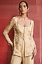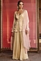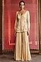 Featuring a butter yellow kurta in satin organza base with embroidery. It is paired with hand embroidered flat chiffon sharara pants and a crushed tissue powder pink dupatta. Accentuate it with statement jewellery, a potli bag and embellished heels, ideal for a haldi, wedding or engagement ceremony.
