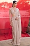 Featuring a champagne draped saree in foil georgette base with floral hand embroidery. It is paired with a net hand embroidered blouse. Accentuate it with statement jewellery, a potli bag and embellished heels, ideal for a festive occasion, sangeet, wedding or engagement ceremony.