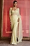 Featuring a lime pre-pleated saree in satin and silk organza base with hand embroidery. It is paired with a net blouse having hand embroidery. Accentuate it with statement jewellery, a potli bag and embellished heels, ideal for a festive occasion, mehendi, wedding or engagement ceremony.