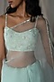 Featuring a mint green saree in pure organza silk base with aari hand embroidery. It is paired with a matching blouse.