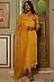 Featuring a mustard yellow kurta in satin base with motifs hand embroidery. It is paired with contrasting ivory pure cotton pants and a matching silk organza dupatta.