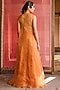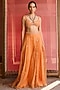 Featuring an orange jacket in organza base with hand embroidery. It is paired with a net hand embroidered blouse and organza motif hand embroidered palazzo pants. Accentuate it with statement jewellery, a potli bag and embellished heels, ideal for a sangeet, wedding or engagement ceremony.