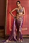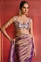 Featuring a purple saree in silk tissue base with motifs and hand embroidery. It is paired with a satin hand embroidered blouse. Accentuate it with statement jewellery, a potli bag and embellished heels, ideal for a festive occasion, sangeet, wedding or engagement ceremony.